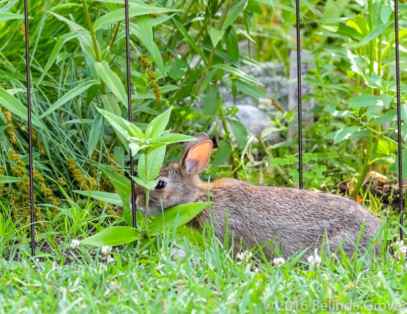 Occasionally we come across eastern cottontails on our walks. The first photo was taken in a wildlife garden. I startled the rabbit as he was eating, it looks like he was trying to hide behind the flower, not too successfully though. I managed to take a shot before he ran off. The rabbit in the second photo looks like a young one. He’s up early, the morning dew is still on the grass. When the sunlight hits their ears they light up like beacons. I just love that!