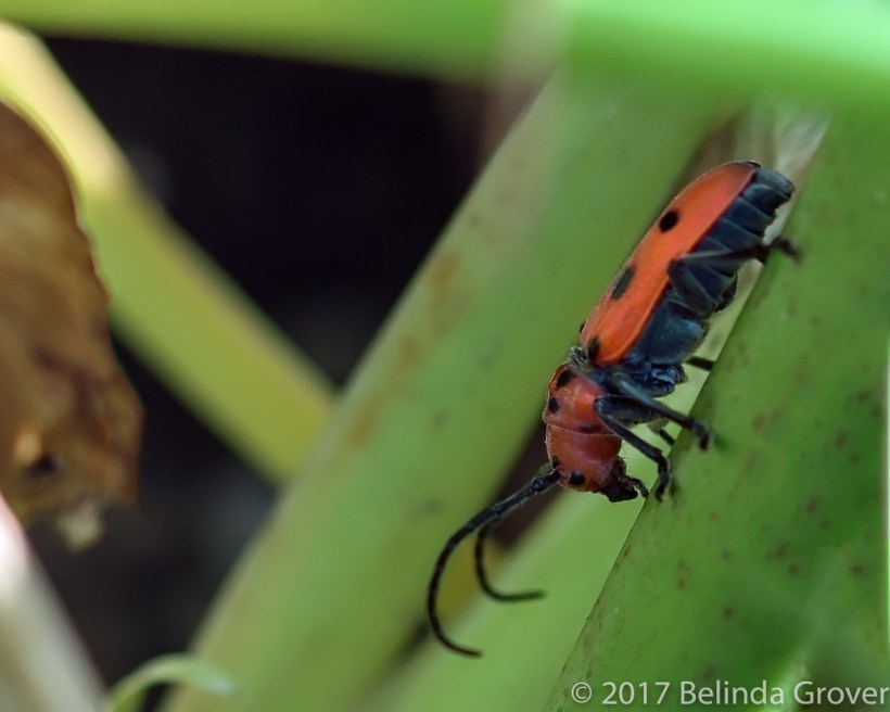 What a treat to see the beetle’s beautiful features. I love seeing the segmented antennae and underbody. Terrific photos, Belinda.