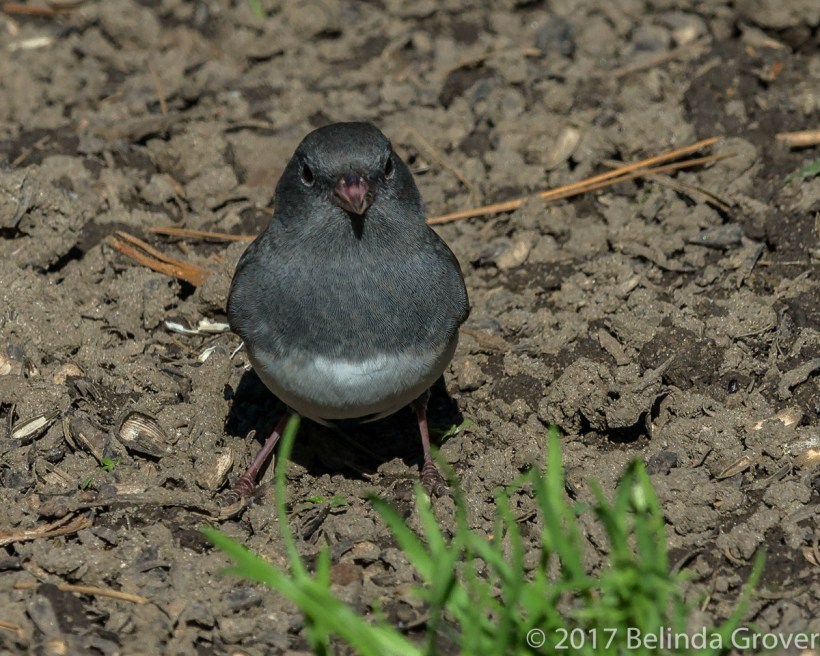 These juncos seem to have more black on them (farther down into the body) than the Oregon juncos we have out west. It’s interesting to compare the birds you have out your way.