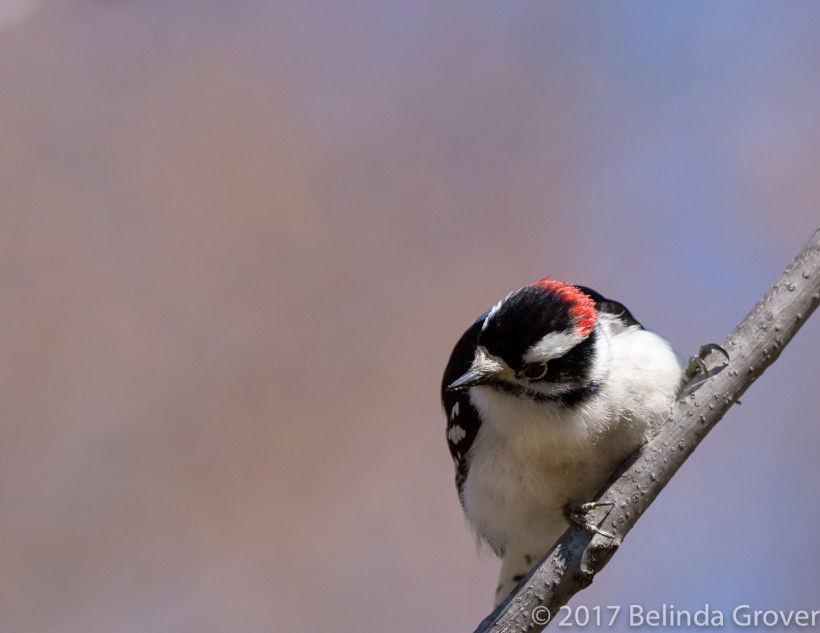 I had planned on taking birds in flight or waterfowl when I spotted these downy woodpeckers. Downies usually move quickly up and down a tree, pecking away until they find a spot with insects. These two, although moving fast, did pause for a bit. I had my 300mm lens with me which got me quite close to them. I like a bit more space around my subjects but I think the birds’ poses added some interest.