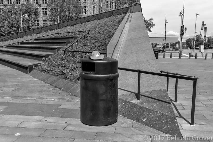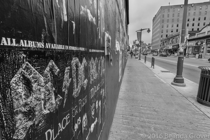 Both of these shots were taken in the city and combine developing interests of mine: street and black and white photography. An angle, a curve, the play of light, something left behind; the photographer pulls the various aspects together. The 60s feel of the commercial strip and the geometric design in the second photo lent themselves to black and white treatments.