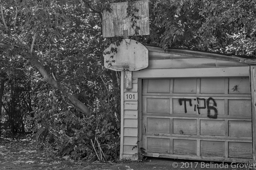 This scene could belong to a different era. The grainy look to the photo lends itself to this feeling. Taken in one of the city’s laneways, it was nice to see that the beautiful tree was left to grow, possibly offering a bit of shade to the kids shooting baskets today and in the past.