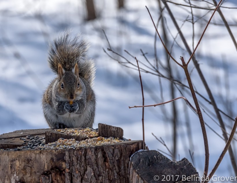 It was mid March last year when I took this photo. A long winter was drawing to a close and more people were out in the woods enjoying the milder weather and bearing gifts for the locals. This squirrel was enjoying the bounty and neither this photographer nor any competition was going to move him along.