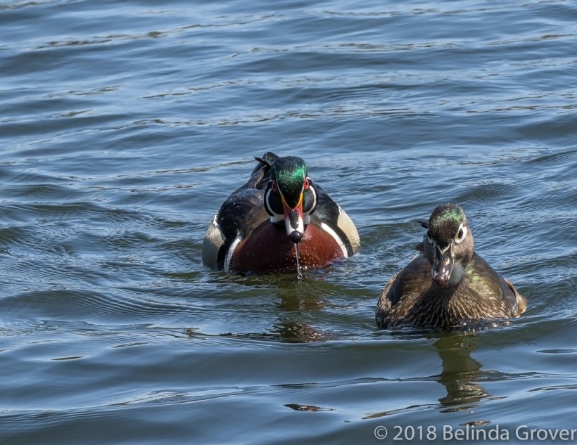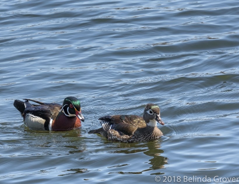 Aren’t they a handsome couple. 🙂 I saw my first wood ducks yesterday at a pond in Albany. I never see them here in the country, so I was surprised to see them in the middle of a city park!