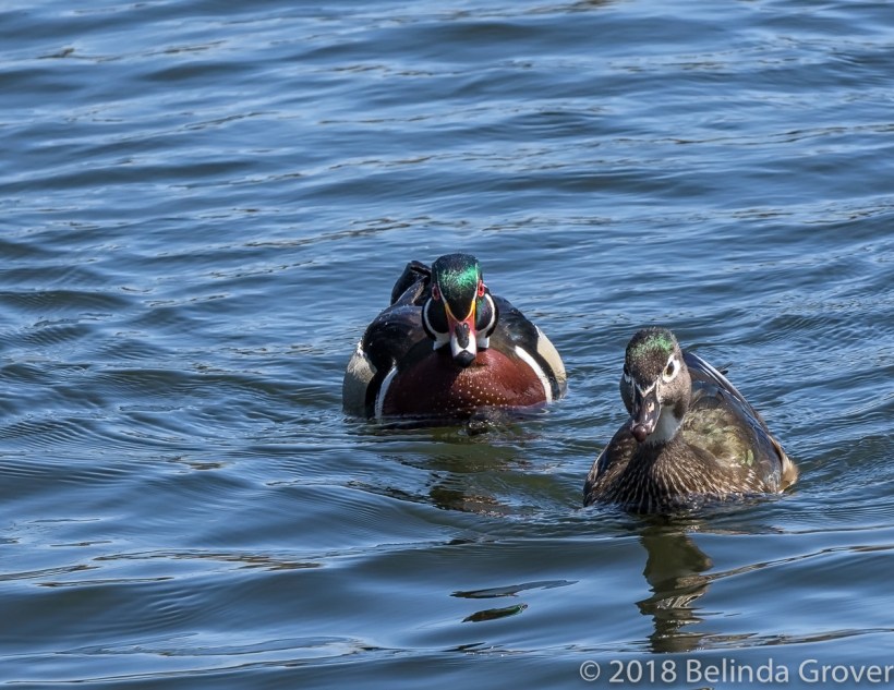 Wood ducks are one of America’s most showy ducks, and your face-front photo here of a pair is stunning, Belinda.