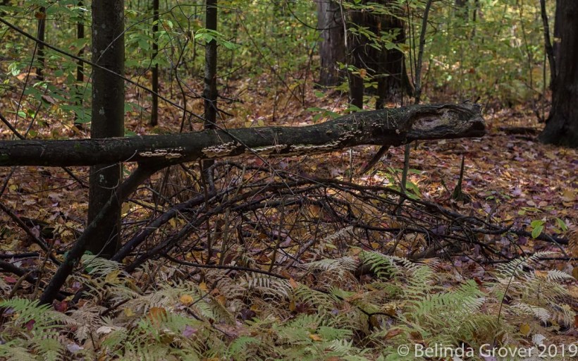 Fall is a good time to photograph mushrooms especially if there’s been a lot of rain. As I was walking, I noticed some bracket fungus running along this fallen tree. It almost looked like a border of lace.