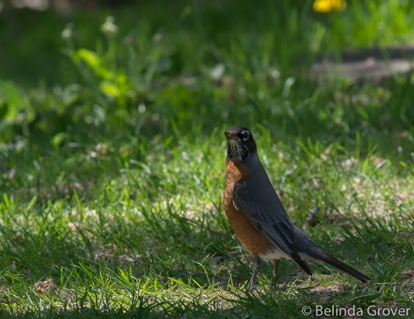 He’s on it! πŸ™‚ The robins here are so busy foraging all day long to feed their young. Intrepid!