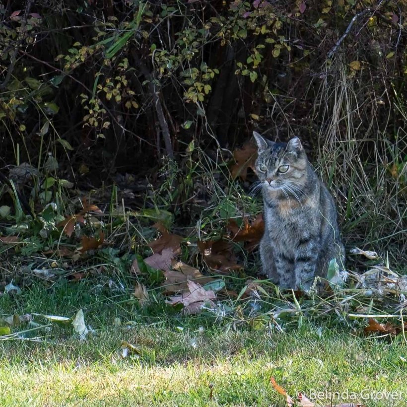 Walking through the local arboretum we heard rustling in the underbrush. After a few minutes a large cat appeared. It sat and looked around and wasn’t in a hurry to leave. It didn’t have a collar so we presumed it was wild and made its home here. Judging by its healthy appearance it knew how to fend for itself.