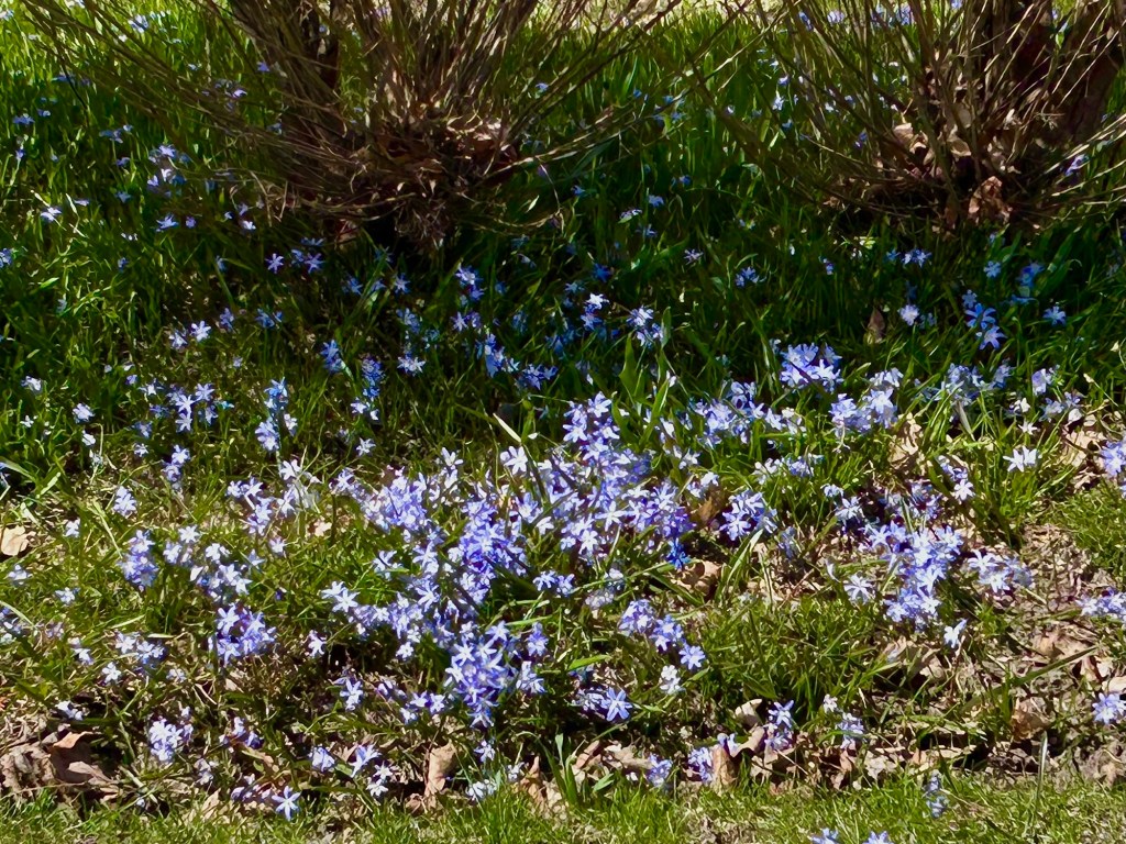 We’ve had a couple of beautiful spring days in a row. The trees are budding, the lawns have turned emerald green and are hosting these lovely scillia everywhere you look.