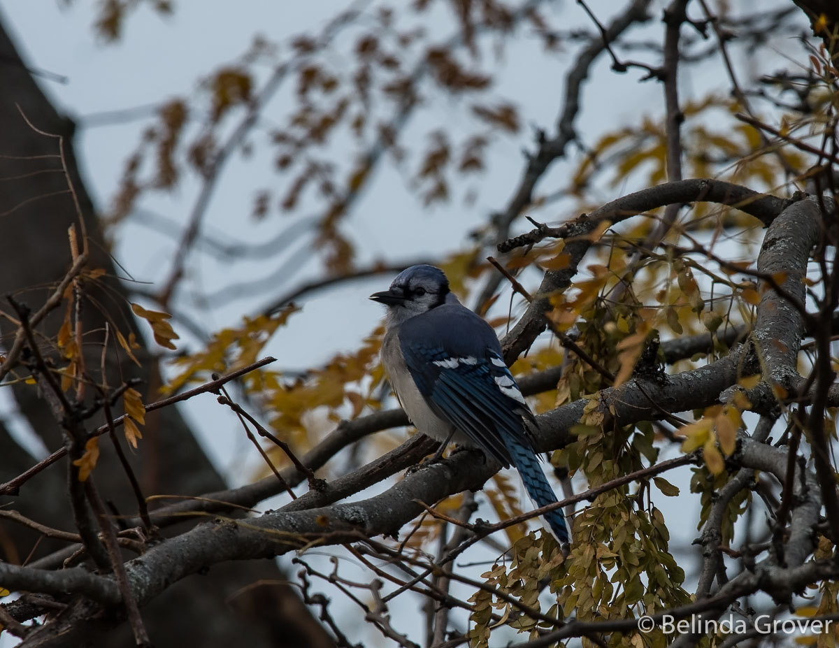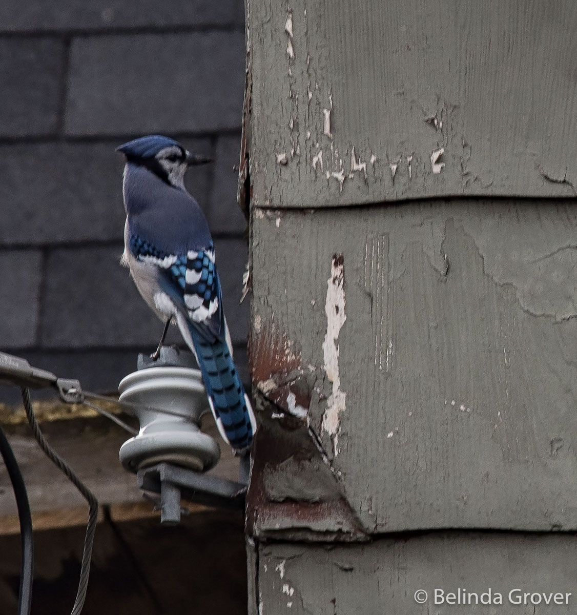 I hadn’t seen a Blue Jay in months and then on a recent city walk, one landed close by.We had just turned off a busy street into a laneway and he followed close behind.