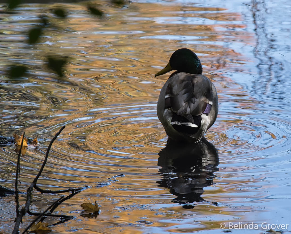 This small lake attracts a lot of ducks; even in winter we see a few mallards. They are hardy. The wood ducks have left now but I did catch this one as it took a last solitary swim.