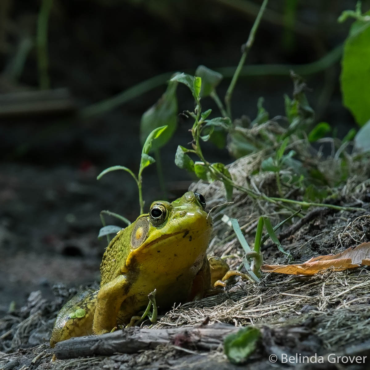 Thereâs a spot at a nearby lake where the frogs like to congregate. When we walk by it we listen for a splash and usually see a couple of frogs. Although Iâve featured this photo before it made me smile when I came across it recently. I hope this slightly re-edited version has the same effect on you.