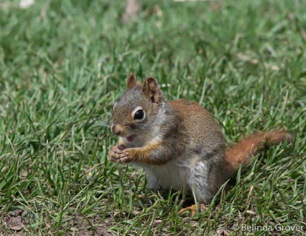 Red Squirrels don’t hibernate in winter but do spend a lot of time in their nests to stay warm and conserve energy. I hope this little squirrel has a cache of food to see him through the bitterly cold weather that’s on the way.