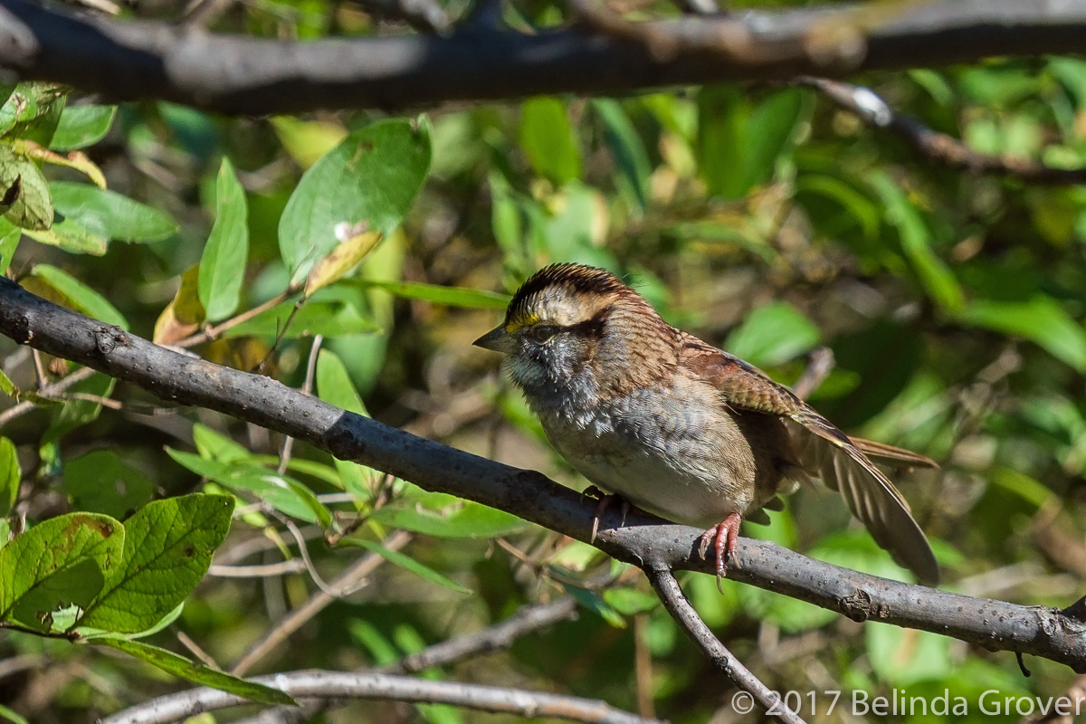 Our favourite reserve was damaged in a destructive windstorm storm last week and is closed to the public for the foreseeable future. We’ll miss the beauty of the place and the animals that call it home. In the meantime we’ve been exploring new trails and spotted this white-throated sparrow along one of them.