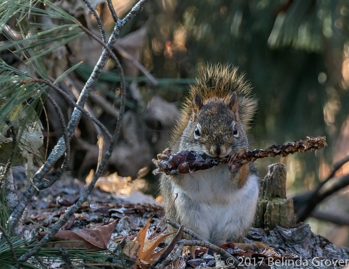 I took a break from aiming at warblers high in the pine trees when I saw the wood duck. I don’t often see these birds on land and thought the background made for an interesting photo. (I don’t think anyone with me noticed the wood duck, as they had their eyes trained on the quick darting warblers.)