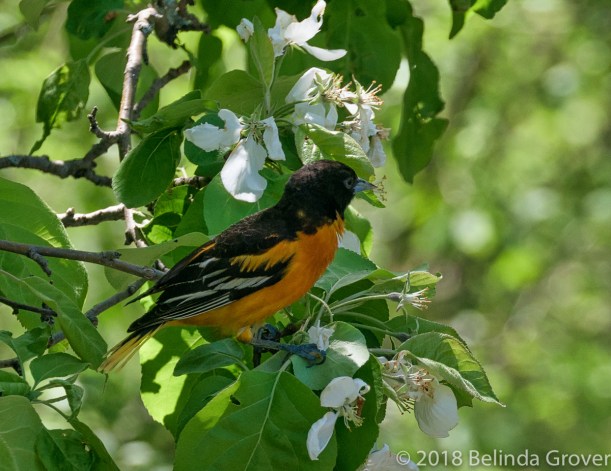 Baltimore Orioles migrate to our area in mid to late May and this bird was right on schedule. He must have found something tasty to eat as he remained in the tree as I continued to take photographs. I thought we might also see his mate as we were there for a while. We didn’t, maybe he was unattached or she was busy elsewhere.
