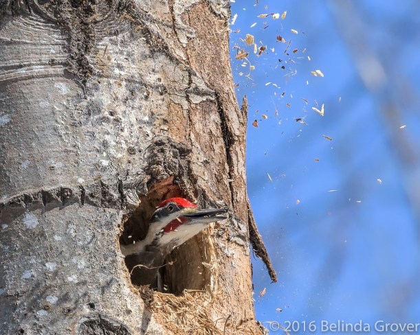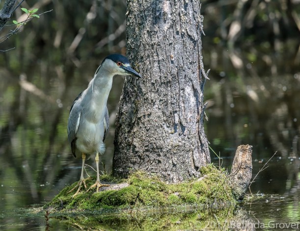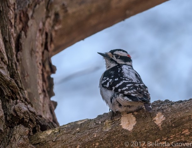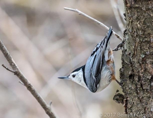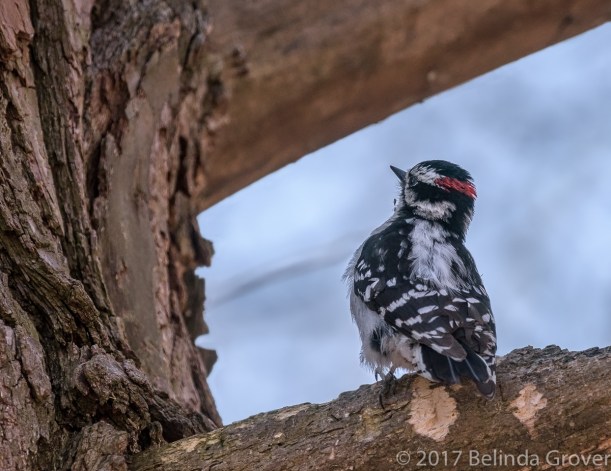 I featured this eastern screech owl earlier in the month. In that series he was inside a tree cavity, on this day he was perched on a broken tree branch nearby. As this owl blends in so well with his surroundings, if I hadn’t been looking for him where I’d seen him before I would have missed him. All three photos had a tremendous colour cast caused by the leaves. In the first two, I used the Color Balance and Hue/Saturation in Photoshop to correct it. The colour cast was too pronounced in the third photo to fix, so I turned it into a black and white using Tonality Pro in Photoshop. As someone said, any day you spot an owl is a good day, this was an excellent day!