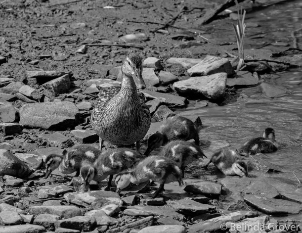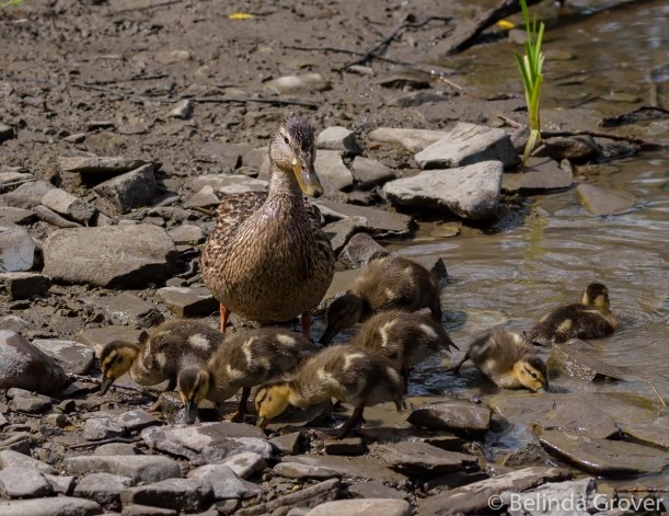 On this side of the reserve the river runs quickly. Threats to these mallard ducklings are fewer; the snapping turtles remain on the lake opposite and fewer hawks patrol the area. I came upon this family group on the river’s edge, two years ago. I hope to see similar scenes before too long.