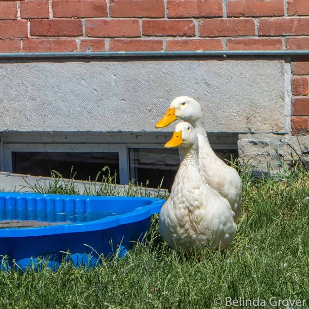 As we turned the corner I saw these two and thought they looked pretty lifelike for lawn ornaments. When one duck moved its head I almost jumped. I’ve never seen a Pekin Duck before and never downtown. We stopped by to visit a few times over several days, more photos to come…