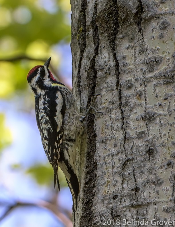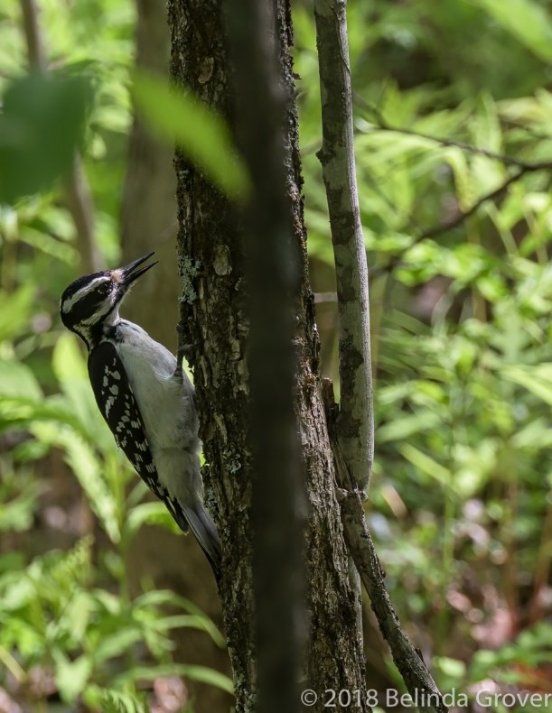 These photographs are the first I’ve ever taken of this woodpecker. I have not seen one in our local woods although they are said to be quite common in our area. We spotted him while on a road trip earlier in the summer. The bird was a handsome one but tricky to take because of the light conditions. I had to open up the shadows, remove the colour cast and adjust the luminance and saturation. He was quite close to us and our presence didn’t bother him so we managed to make the most of our brief encounter.