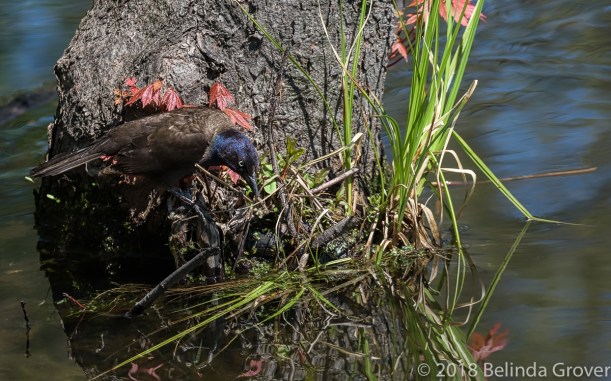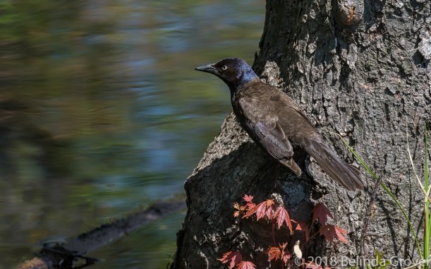 I took these photos in May as the Grackles were migrating through. I’ve yet to see them in the fall although I’m sure they fly through as they head south. I usually spot them along the shoreline, half hidden by branches looking for food. I was lucky in this case as the bird was out in the open. Grackles are gregarious birds, if you see one they’re usually in the company of more. A striking bird with its iridescent plumage and yellow eyes.