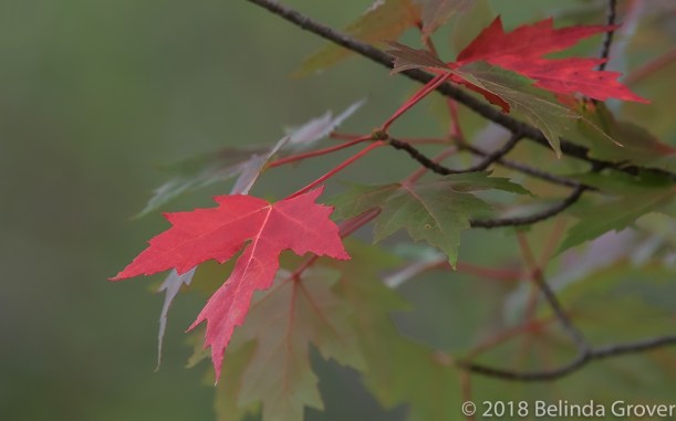 I noticed the muted background before I really saw the flower rising against it and was struck by the start of the slow change to fall. I walked a little further and saw this Maple, always the first tree at the reserve to change colour every year. We’re still under heat advisories and the days are long but the slow approach of fall has begun.