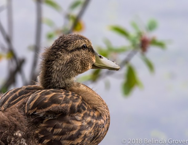 This female mallard was drying off after a swim but those wayward feathers would not be tamed. She is moulting like many other birds at this point in the summer. It’s a vulnerable time as she can’t fly until her feathers are replaced. They’re excellent swimmers though and the lake provides a lot of reedy waterways to escape to.