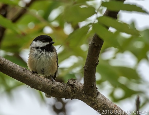 Chickadees forage well on their own all summer long, so we don’t see as much of them until the weather gets cooler. They’ll soon become our constant companions. When I took this photograph earIy last month I was lucky that the bird sat still long enough for me to take its picture. Often they don’t!