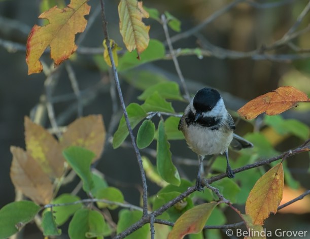 I usually see chickadees out in the open flitting from branch to branch. I caught this bird in a quiet moment well off the path in challenging light. I liked the photo but hesitated before posting it because of the flare at the bottom of the image. Still worth featuring though.