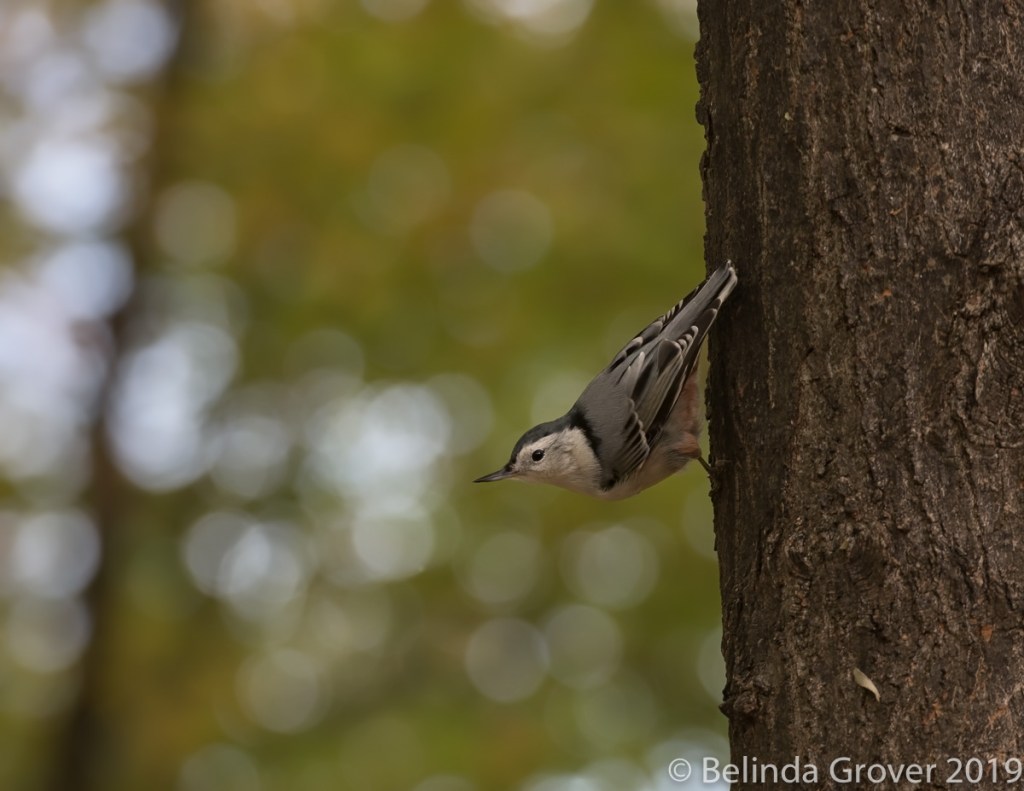 The nuthatch was creeping along the tree trunk, struck a typical pose and then was off. These birds are constantly on the move so I was pleased to get this photo before it flew away.